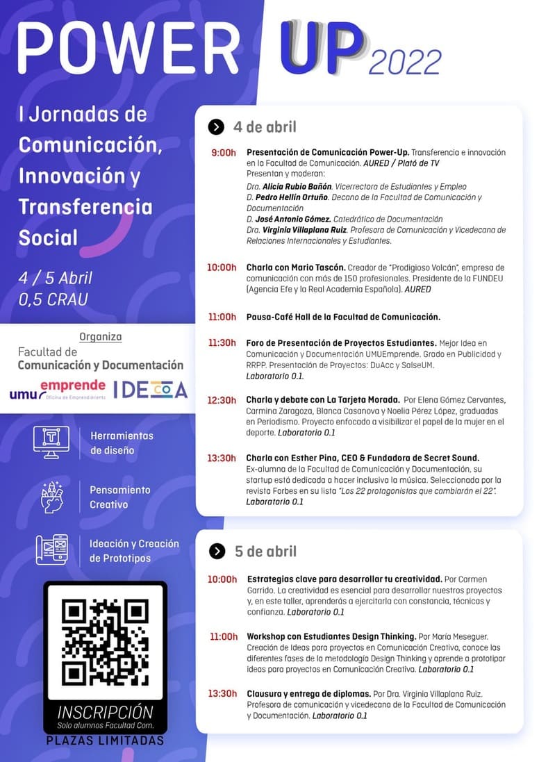 Comencé mis prácticas en la Oficina de Emprendimiento de la Universidad de Murcia, donde formé parte a lo largo de mi último año de carrera y máster.